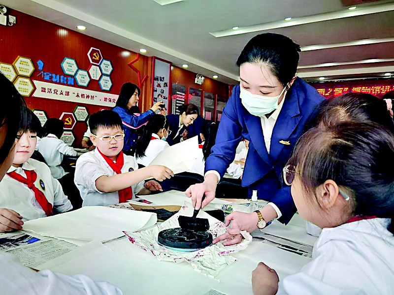 当天上午,太原博物馆联合万柏林团区委、万柏林区青年志愿者协会走进荔竹社区,以“晋风古韵·寻山西之源”为主题,以太原博物馆基本陈列 “锦绣太原历史文化展”为依托,为兴华街小学的40余名学生开展了“屋上遗珍拓上寻”社教课程。