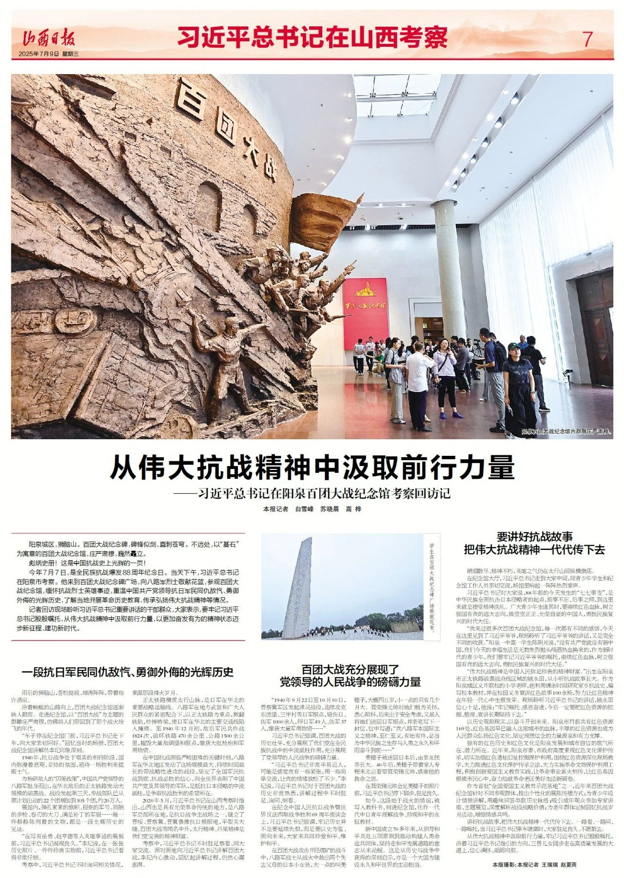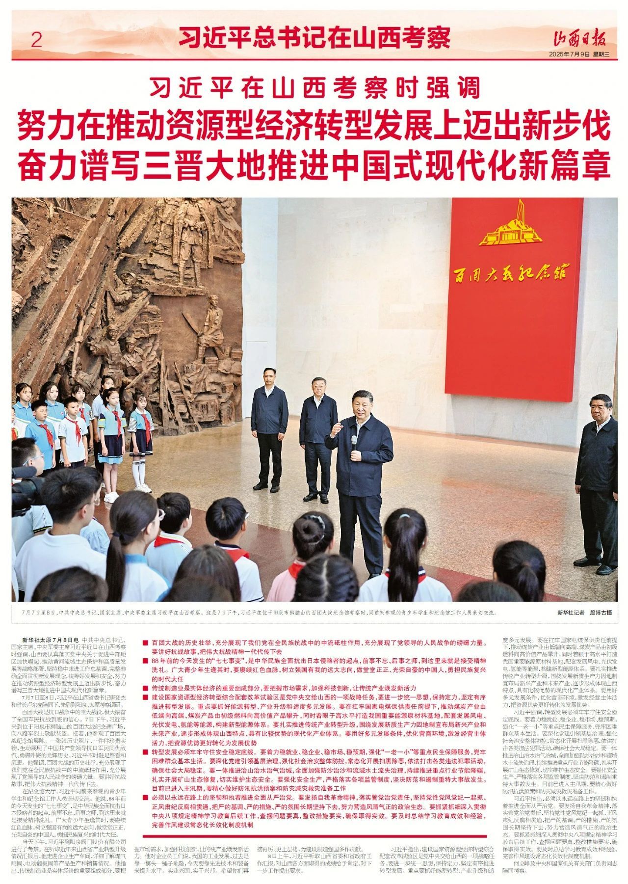 7月7日至8日,习近平在山西省委书记唐登杰和省长卢东亮陪同下,先后到阳泉、太原考察调研。