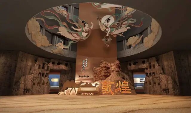三楼敦煌文化场景展区是本次展览的沉浸式体验中枢,以空间叙事重构文化场域,通过多维感官联觉设计,将观众引入一场跨越千年的美学对话。