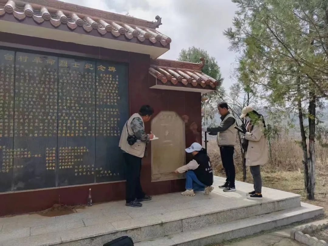 长治市沁县四普工作队在对一处新发现的古台村烈士碑进行登记。