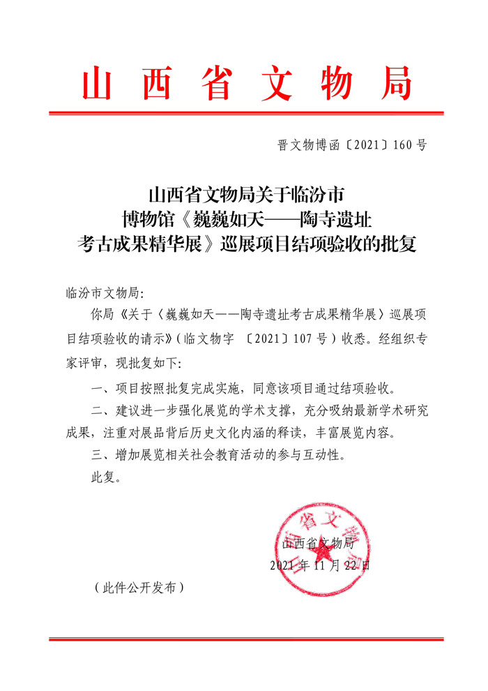 下一篇 : 山西省文物局关于同意山西博物院实施2022年度陈列展览计划的批复