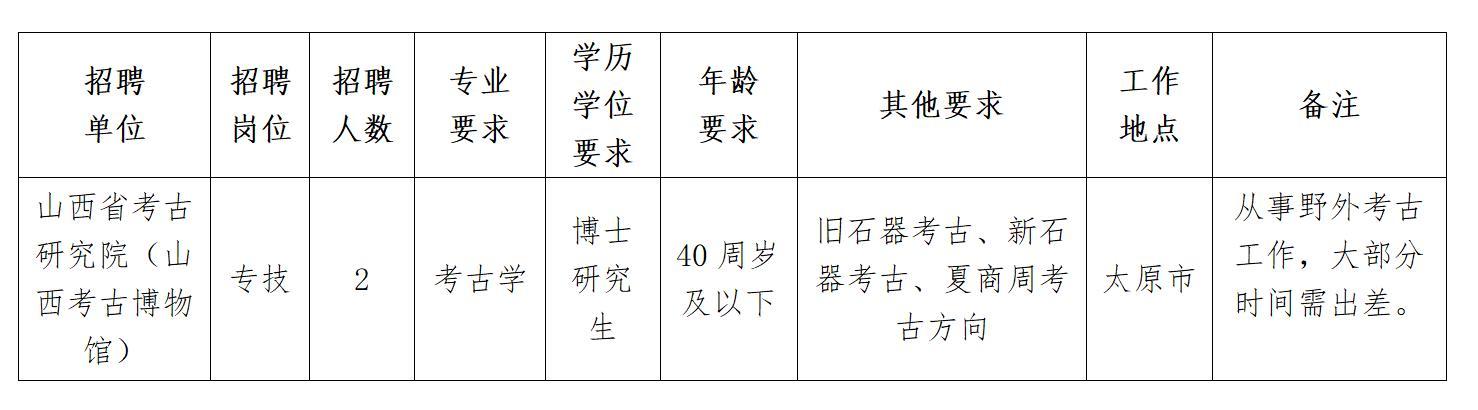 山西省文物局所属事业单位山西省考古研究院(山西考古博物馆)2025年公开招聘博士研究生2名,均为专业技术岗位。招聘岗位所需的具体条件以招聘公告中所列条件为准。