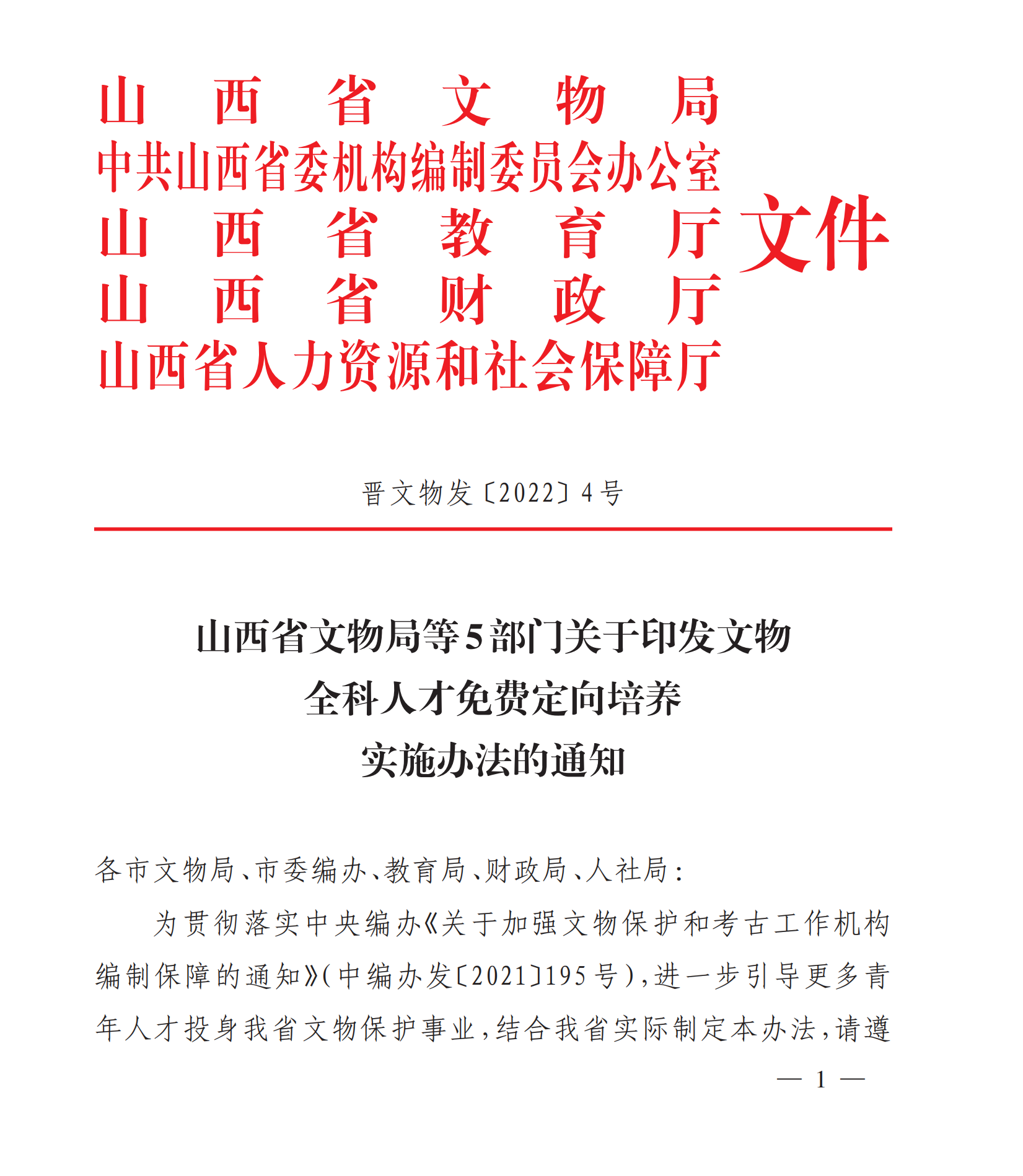 山西省文物局关于对文物全科人才免费定向培养工作及实施办法的解读 https://wwj.shanxi.gov.cn/zwgk/zfxxgk/zdgkjbml/ztfl/zcjd/202211/t20221118_7450905.shtml