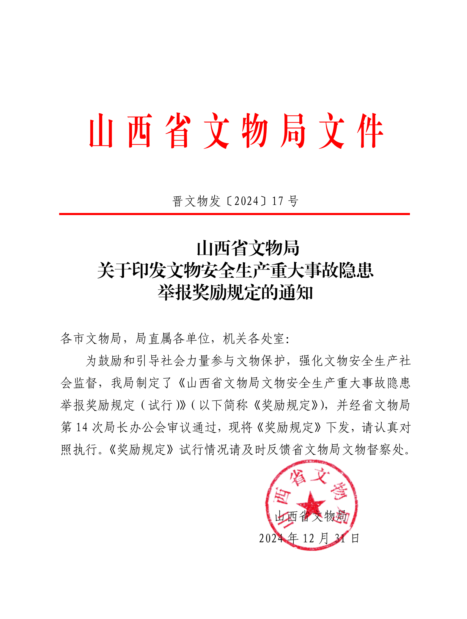 山西省文物局关于印发文物安全生产重大事故隐患举报奖励规定的通知.pdf