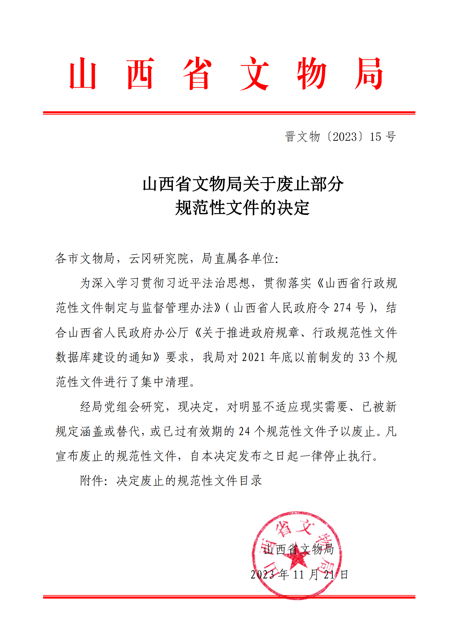 山西省文物局关于废止部分 规范性文件的决定pdf