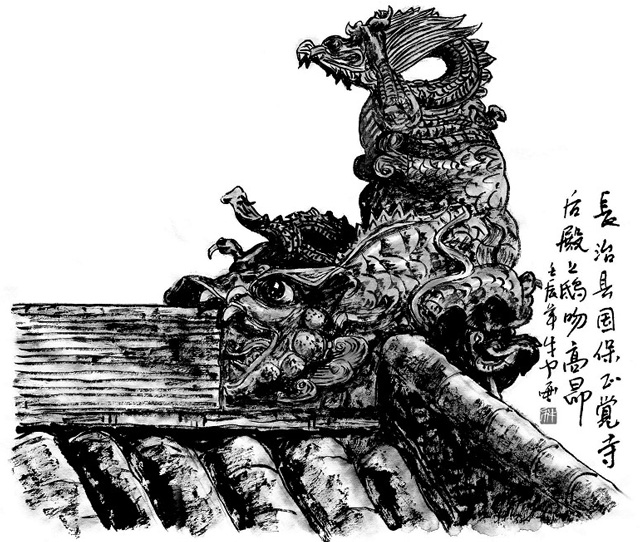后殿的梁架简洁明朗,结构合理,斗拱疏朗,用材敦厚肥硕。刘书珍老人介绍,这座梁架是现存宋代木构建筑中较为典型的代表作,“别看这座寺院比起别的寺院来,规模不是很大,但建筑的价值很高呢,经常有专业人士不远千里慕名来探寻研究,主要就是看这梁架。”在如此偏僻的小山村留存如此珍贵的宋代木构,记者不由得对上党这片古老的土地更添增一份崇敬之情。