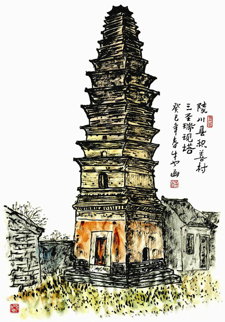 卢小鱼笑称三圣瑞现塔是座“仿古”建筑。原来,这座金代古塔确实是金人在隋塔的基础上重建的。