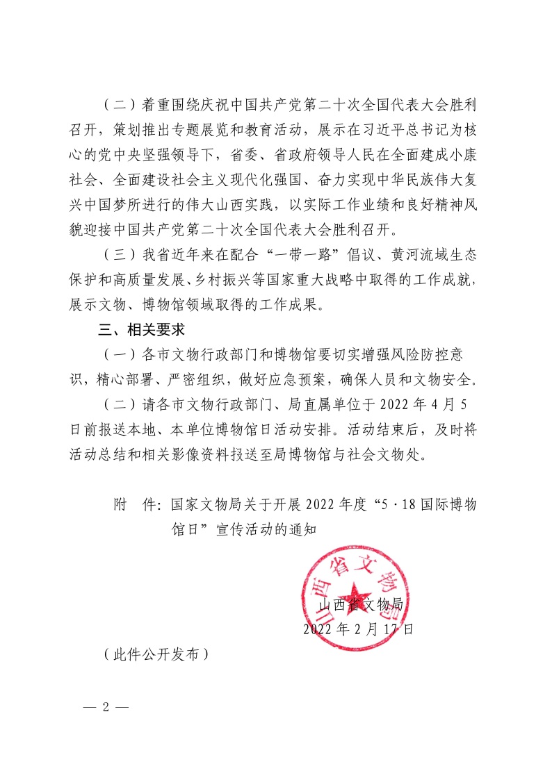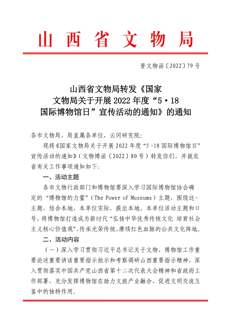 下一篇 : 山西省文物局转发《国家文物局关于开展2022年度“弘扬中华优秀传统文化、培育 社会主义核心价值观”主题展览项目征集工作的通知》的通知